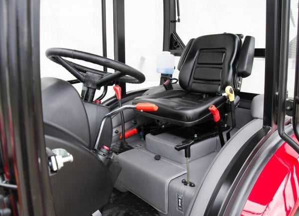 Luksusowa kabina Knegt posiada m.in. ogrzewanie, wentylację, dwie wycieraczki do szyb z instalacją do mycia, instalację radiową z dwoma głośnikami, przyłącze 12 V, przyłącze do lampy ostrzegawczej, cztery reflektory LED, duże okna z bezpiecznego szkła zapewniające dobrą widoczność i łatwe wsiadanie.